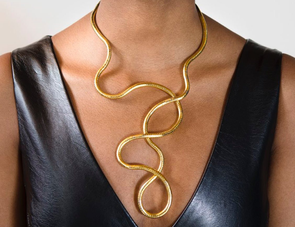 Diese elegante, formbare Schlangenkette passt sich flexibel jeder gewünschten Form an und verleiht jedem Outfit eine individuelle und moderne Note.