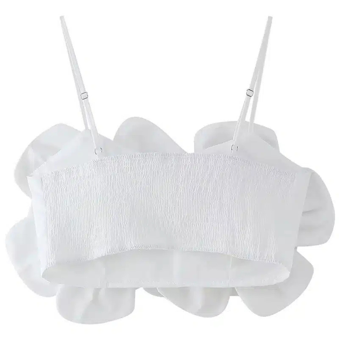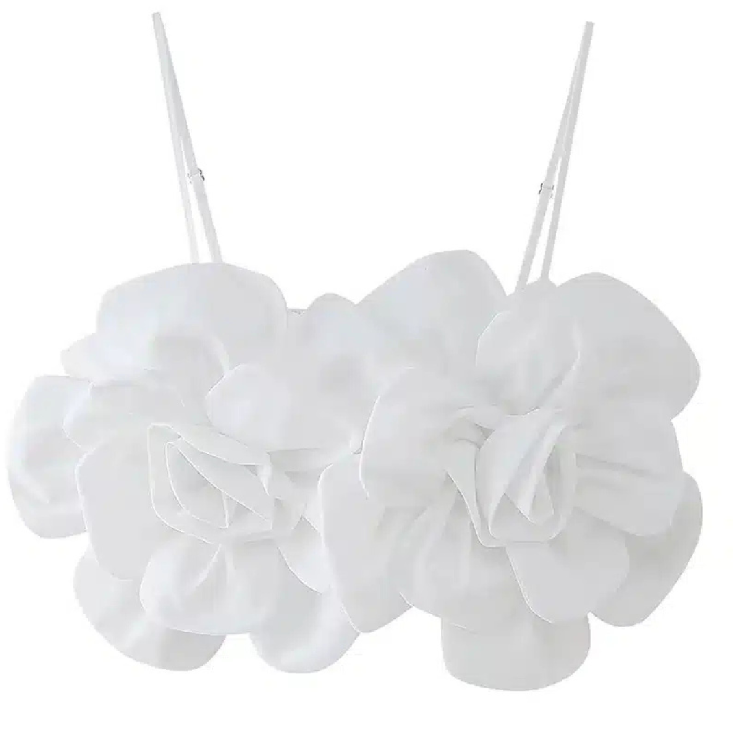 • Design: Bauchfreies Oberteil mit dünnen Trägern und zwei großen Blumenapplikationen im Brustbereich