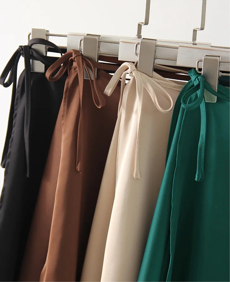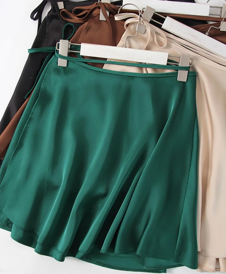 Der Satin-Stoff verleiht ihm einen luxuriösen Look, perfekt für den Sommer.
