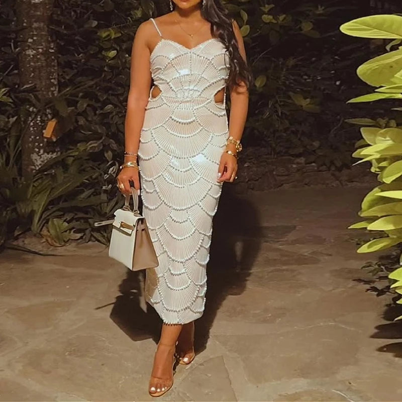Elegantes, figurbetontes Sommerkleid mit V-Ausschnitt und schmalem Schnitt – perfekt für stilvolle Clubnächte oder besondere Anlässe.