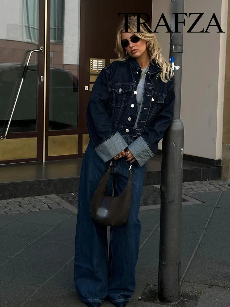 Das Zaray Denim-Zweiteiler-Set vereint klassischen Vintage-Charme mit modernem Tragekomfort. Die langärmlige Jeansbluse mit Knopfleiste & Umlegekragen verleiht einen stilvollen Touch, während die hochgeschnittene Wide-Leg-Jeans für eine schmeichelhafte Silhouette sorgt.