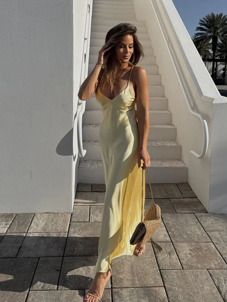 Dieses elegante Damenkleid überzeugt durch seine schlanke Passform und stilvolle Ausstrahlung – ideal für Frühling und Sommer. Mit gerader Silhouette, natürlicher Taille und einem klassischen V-Ausschnitt vereint es zeitlose Eleganz mit einem Hauch Sinnlichkeit.