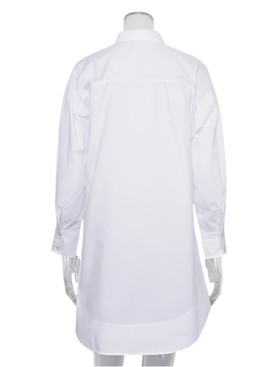 Lässige, lange Damenbluse mit durchgehender Knopfleiste und klassischem Umlegekragen. Aus leichtem, gewebtem Broadcloth-Stoff – perfekt für Frühling und Sommer. Die lockere Passform und das Patchwork-Design machen sie ideal für stilvolle Alltagslooks.
